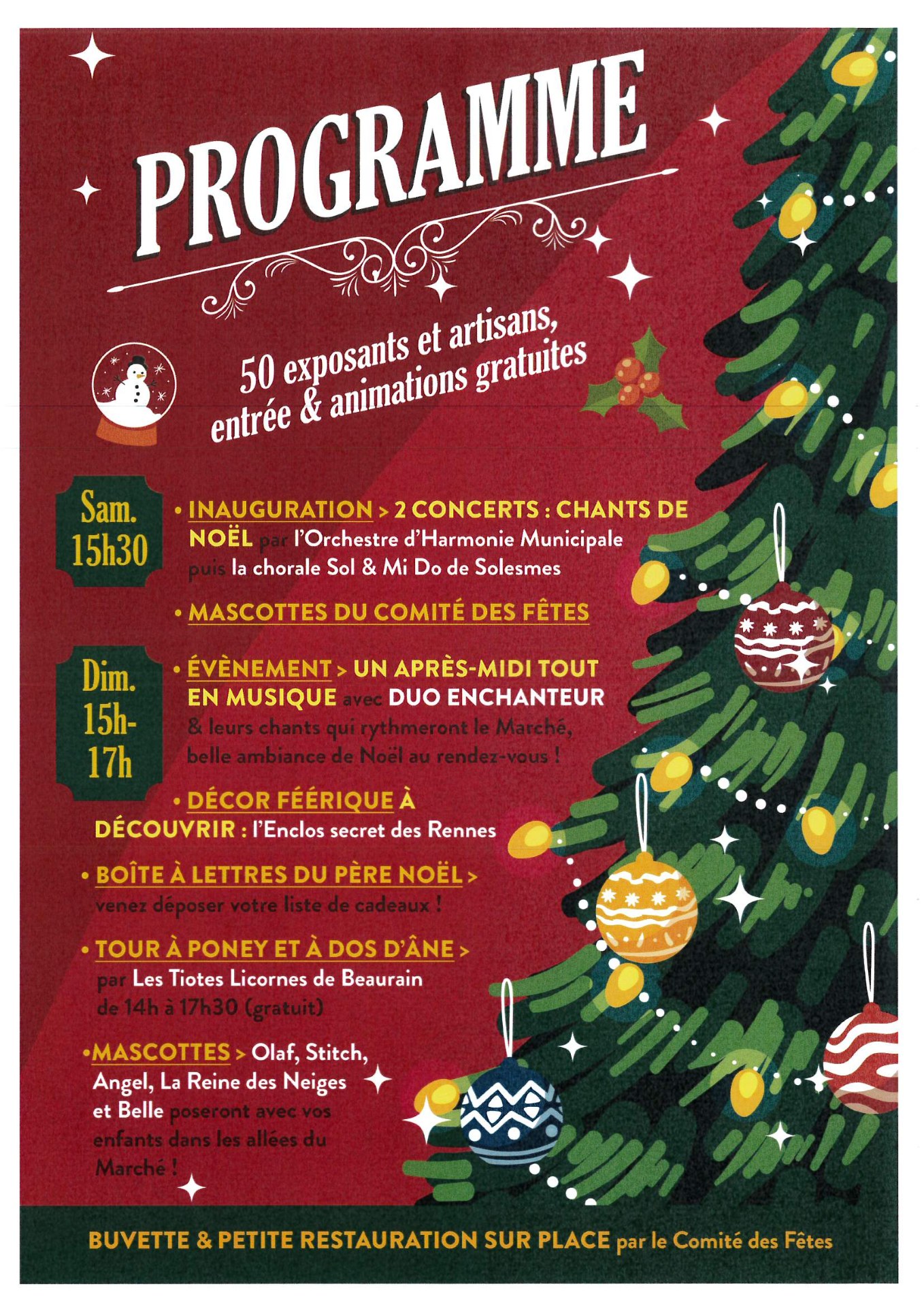- Inauguration > 2 concert : chants de Noël par l'Orchestre d'Harmonie Municipale puis la chorale Sol & Mi Do de Solesmes