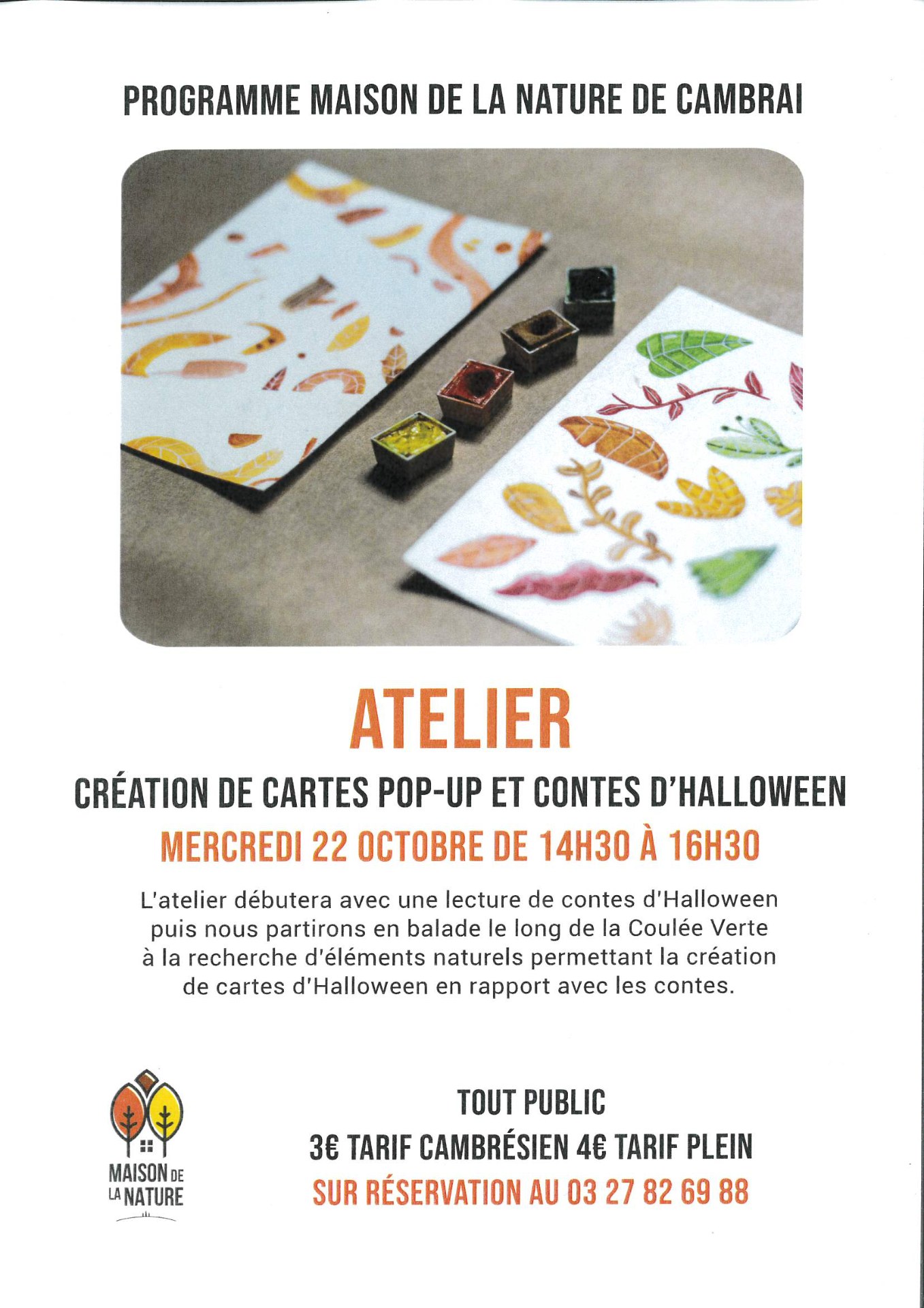 L'atelier débutera avec une lecture de contes d'Halloween puis nous partirons en balade le long de la coulée verte à la recherche d'éléments naturels permettant la création de cartes d'Halloween en rapport avec les contes.