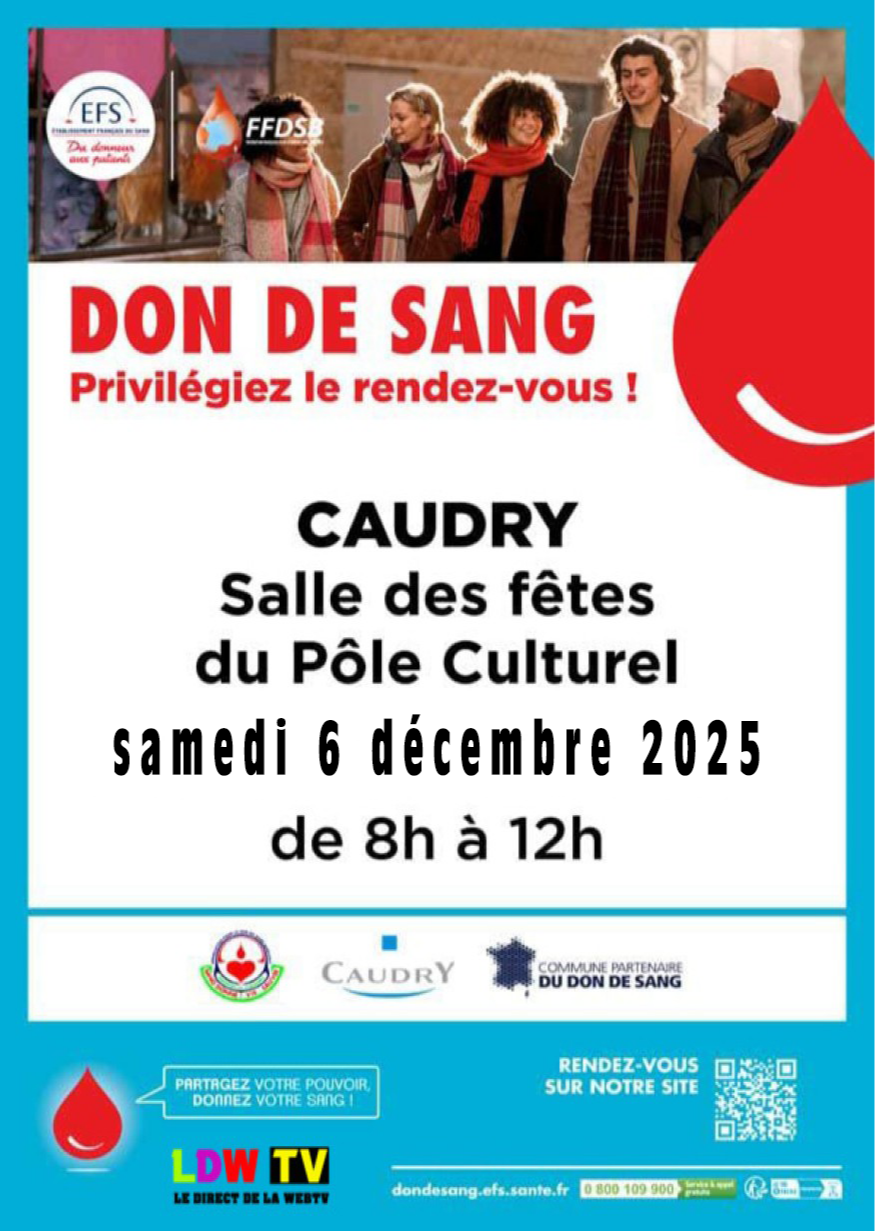 L'Établissement Français du Sang sera présent à la salle des fêtes du Pôle Culturel de Caudry aux dates suivantes pour collecter votre sang :