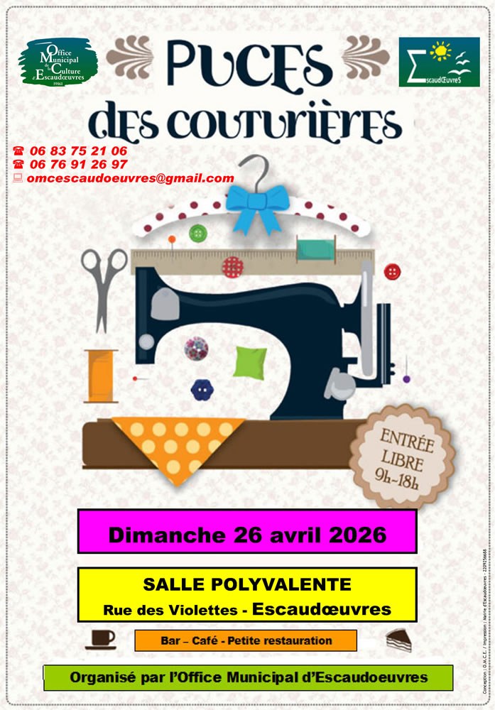 L'Office Municipal de la Culture d'Escaudœuvres vous invite à venir dénicher tissus, fils, laines, boutons, dentelles, rubans, perles... de toutes les couleurs, sans oublier du matériel de couture !