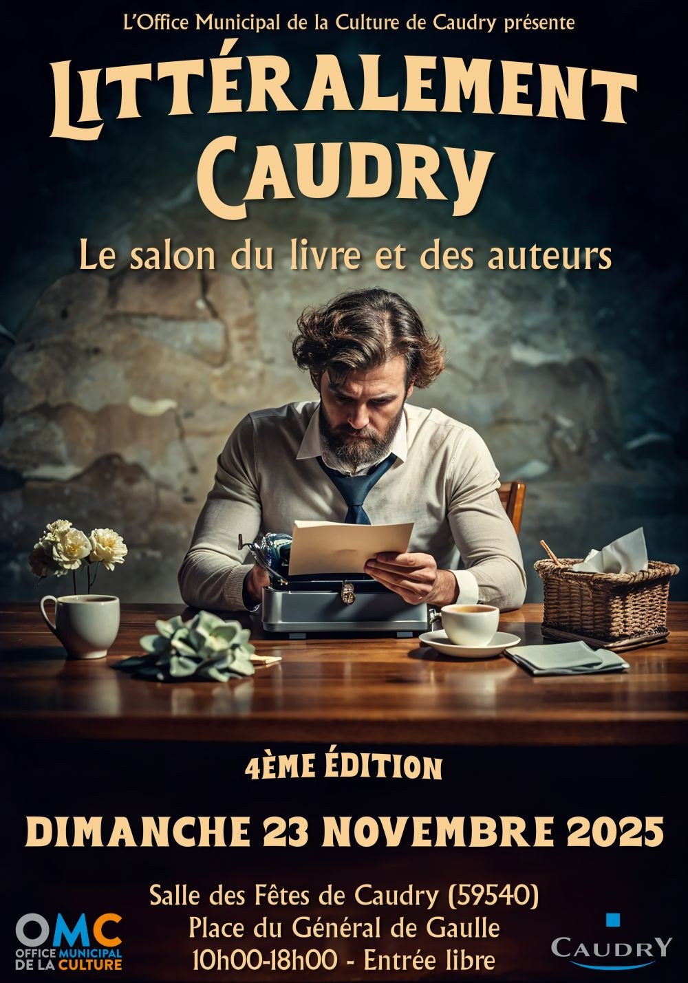 Littéralement Caudry : le salon du livre et des auteurs - 4ème édition Organisé par l'Office Municipal de la Culture de Caudry avec le soutien de la ville de Caudry