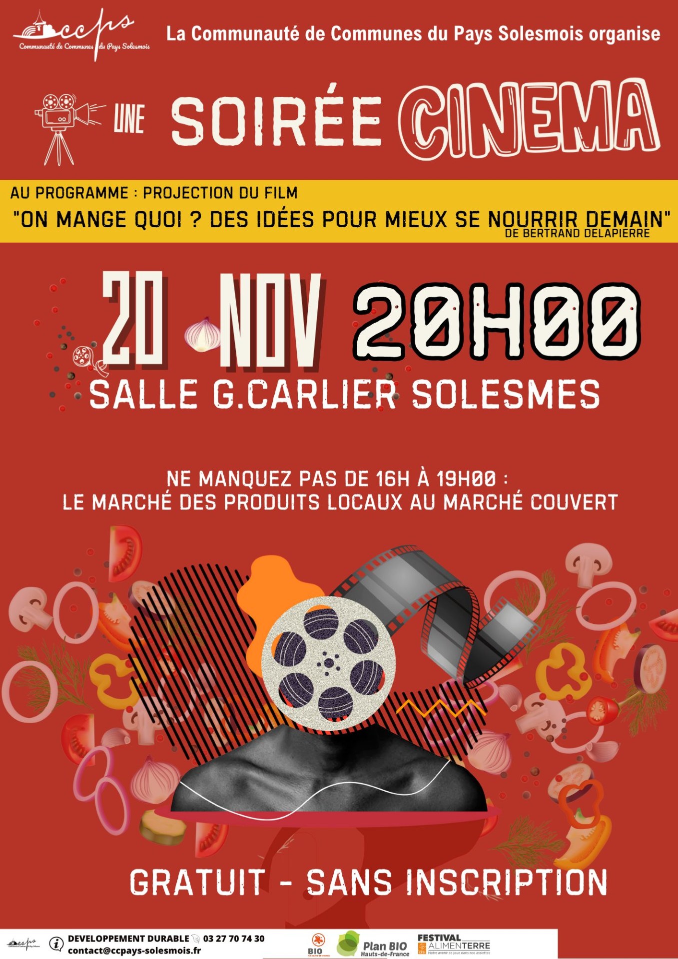 La Communauté de Communes du Pays Solesmois organise une soirée cinéma "On Mange quoi ? Des idées pour mieux se nourrir demain"