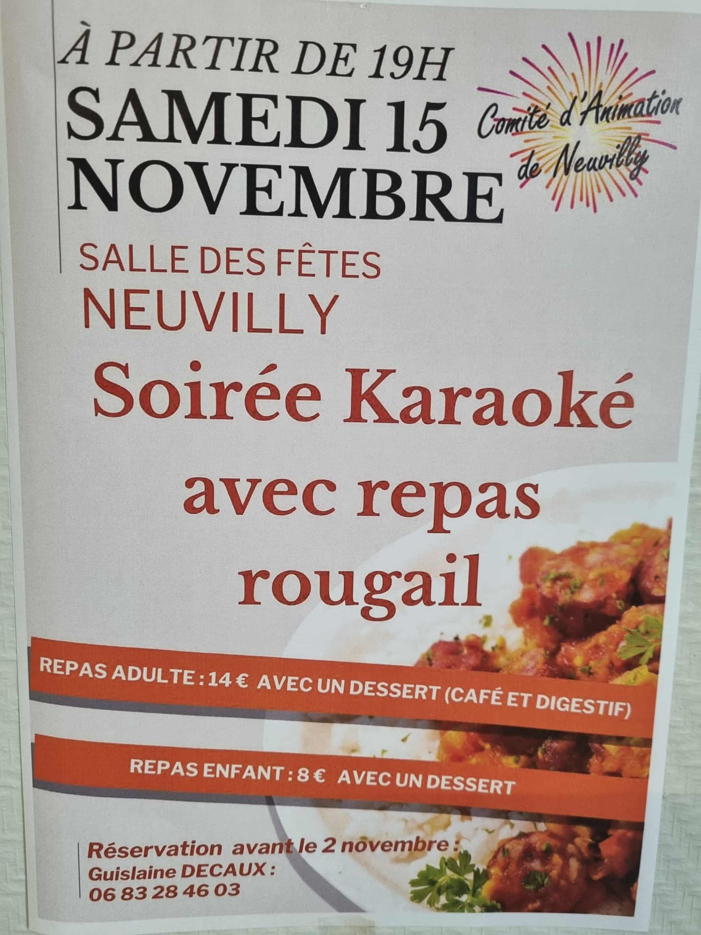 Réservation avant le 2 novembre Guislaine DECAUX : 06 83 28 46 03