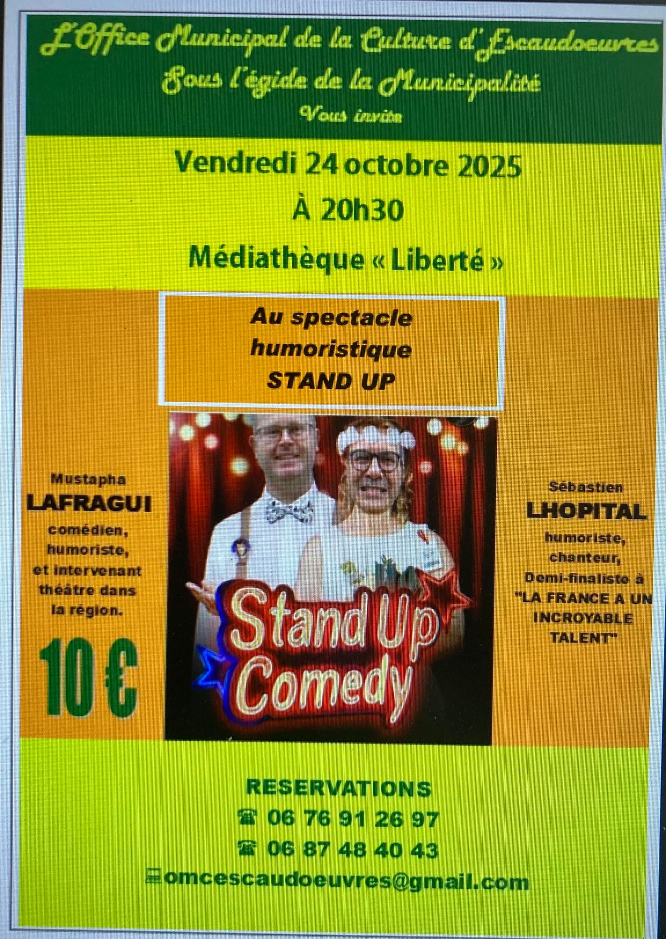 L'office municipal de la culture d'Escaudoeuvres sous l'égide de la municipalité vous invite au spectacle humoristique "Stand up"